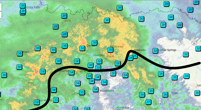 bubba hotep wrote:9:00 am surface freezing line. It dipped back south as the big band moved through.