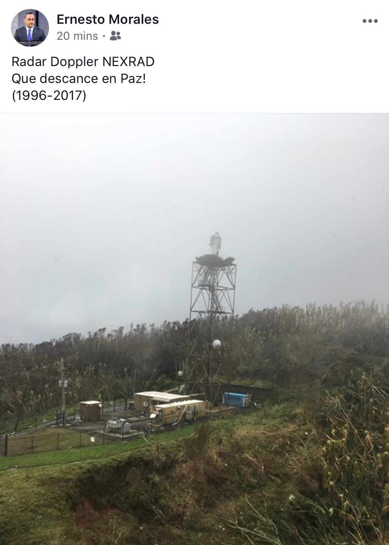 Wow, that shows the power of the winds. First NWS radar to be destroyed since the Miami radar in Andrew in 1992?