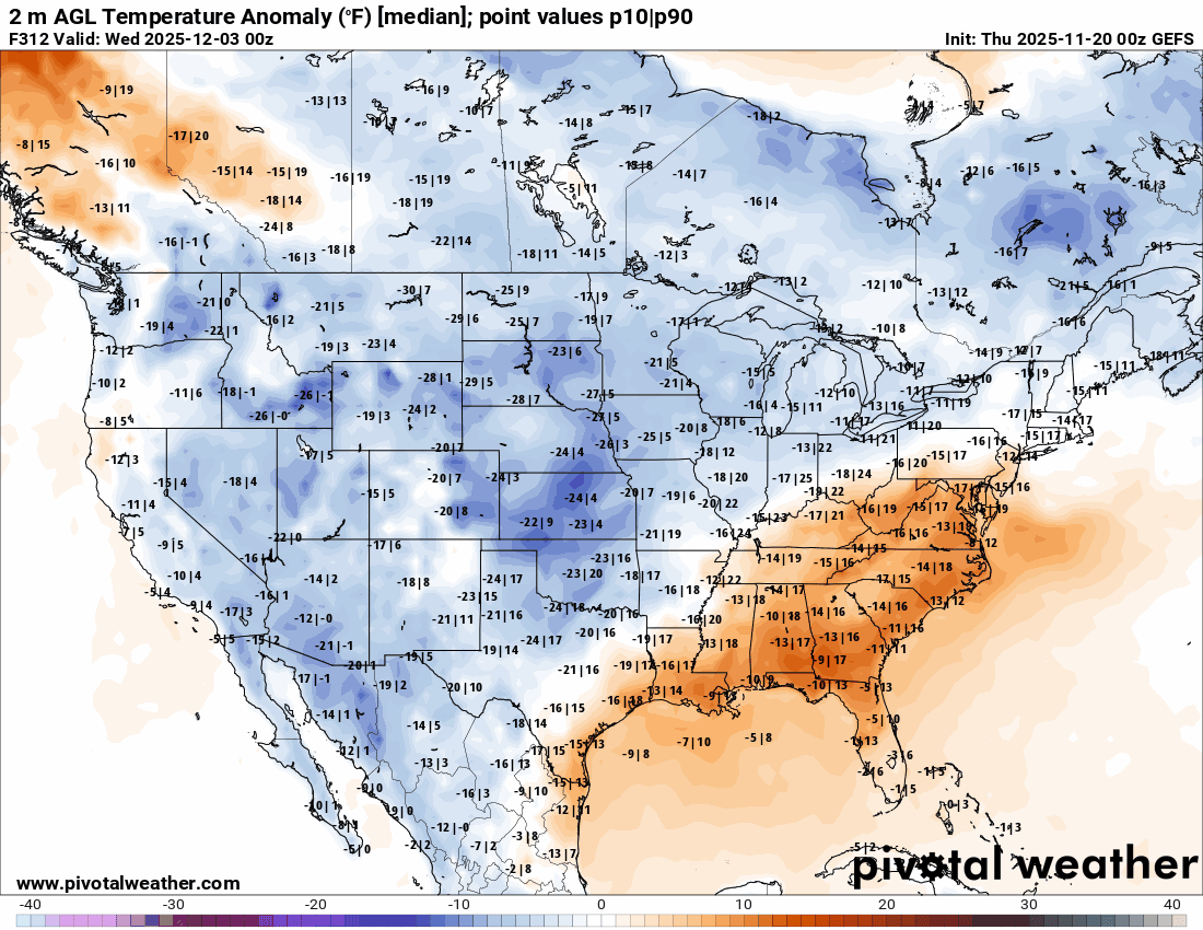 I wouldn't worry too much about the long range model noise. The analogs and trends favor cold from the high plains to the southern plains. Some op runs will be too progressive, others holds back too much. Ridging on and off the western North American coast is favorable