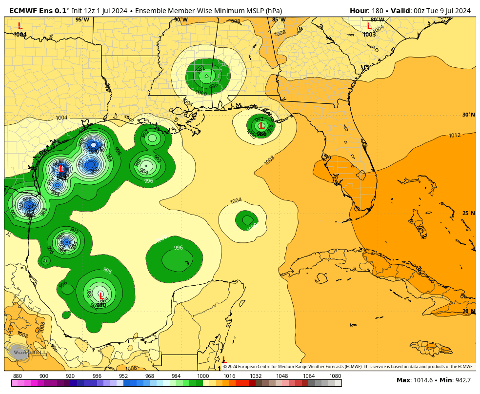 A deeper trough over the Midwest may help to breakdown the ridge and shift it more eastward and perhaps allow Beryl to gain some latitude over the southern gulf possibly toward Texas. The other question is how strong Beryl is once it moves over the high terrain of the Yucatan Peninsula.