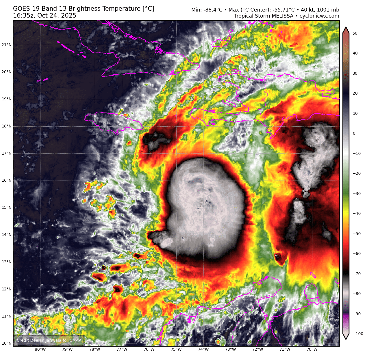 sasha_B wrote:Recon is observing 50~60 kt flight-level winds, and Melissa's satellite presentation is still improving. If that trend persists, I think it's quite possible that the NHC will go with 45 kts on the 18z advisory, which would be in line with their forecasts from last night.